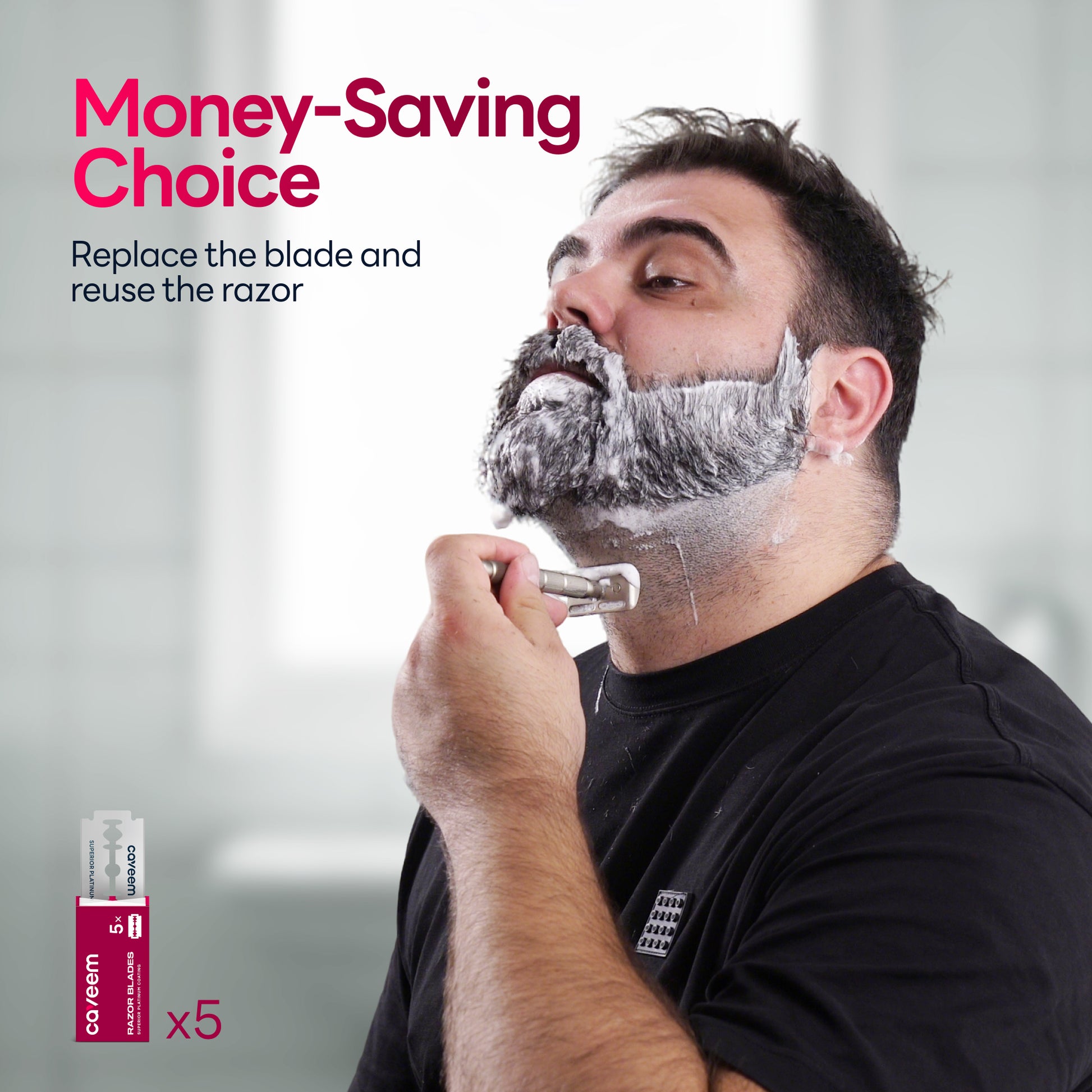 - YOUR SHAVING SKINCARE WITH CAVEEM: Our double-sided razor is crafted from upscale, corrosion-resistant metal, ensuring durability and long-lasting use. The stainless steel blades wrapped in wax paper offer better safety, smoother and convenient shaving. The attached razor blades can last about a year. Take pleasure in an irritation-free shaving every time