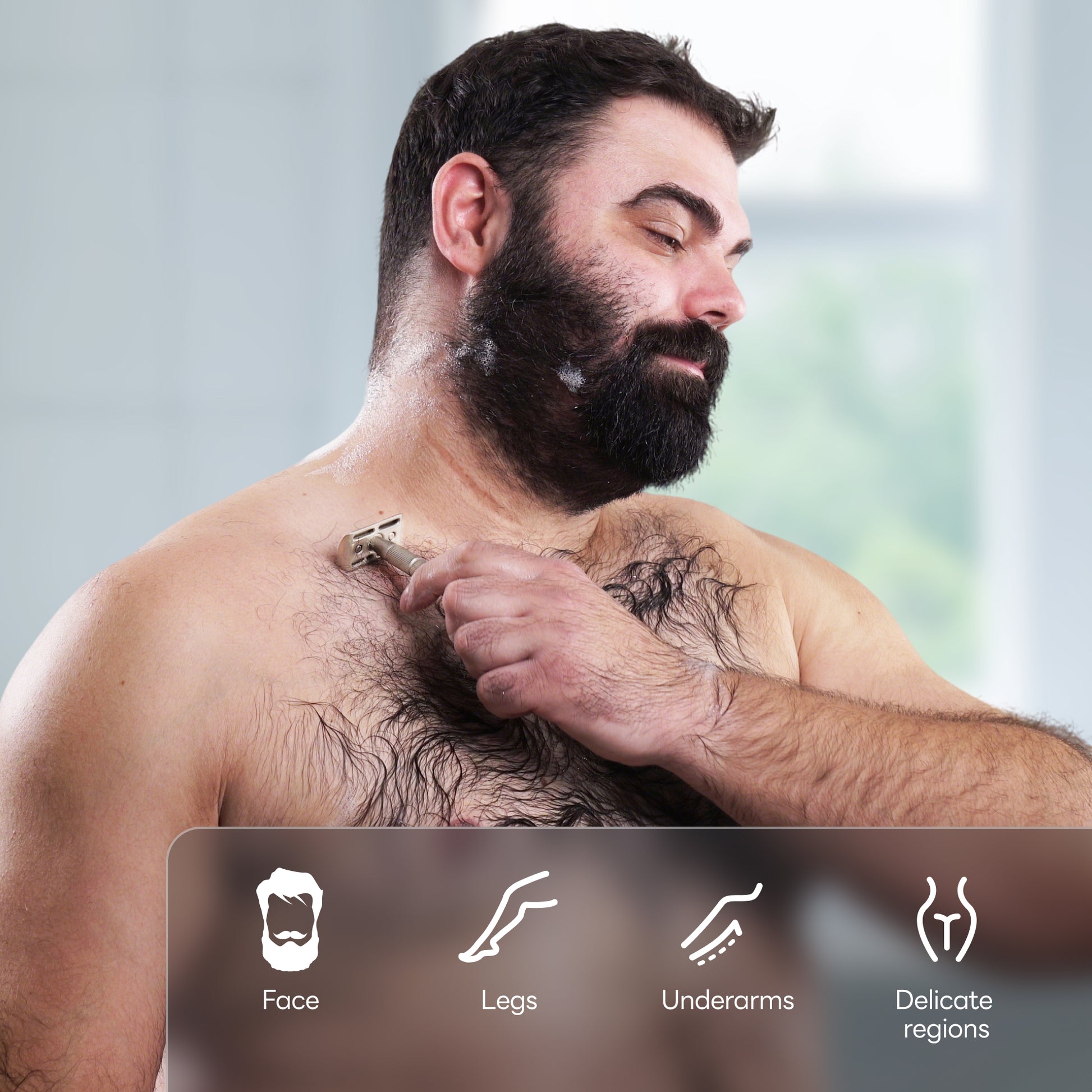 - DESIGN FOR BEGINNER:CAVEEM's DE safety razor is suitable for beginners, offering trouble-free, precise shaving with light glides. Several actions for easy blades replacement. Its innovative handle textured design is non-slip crafted for comfortable grips, allowing smoother shaving at a 30-degree angle