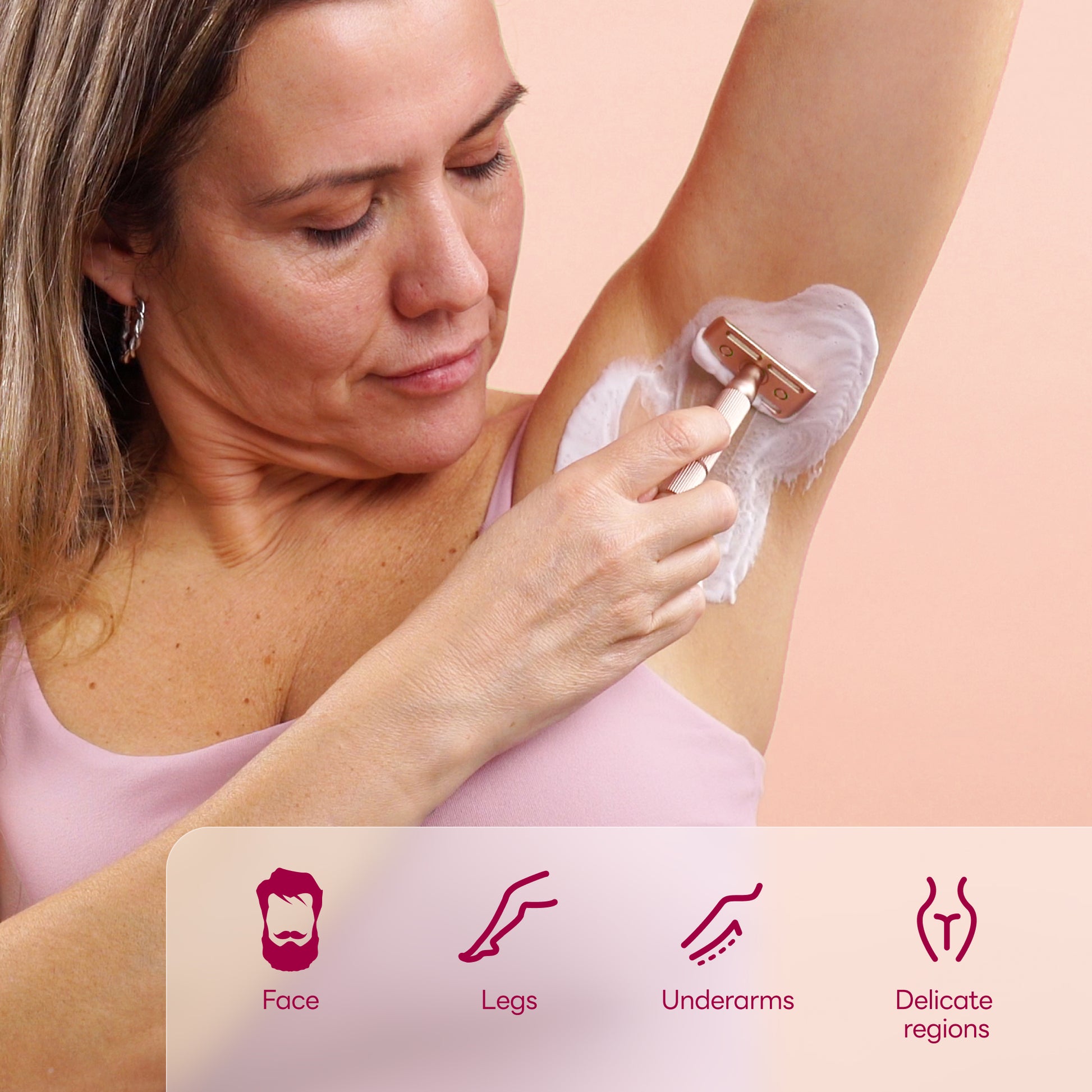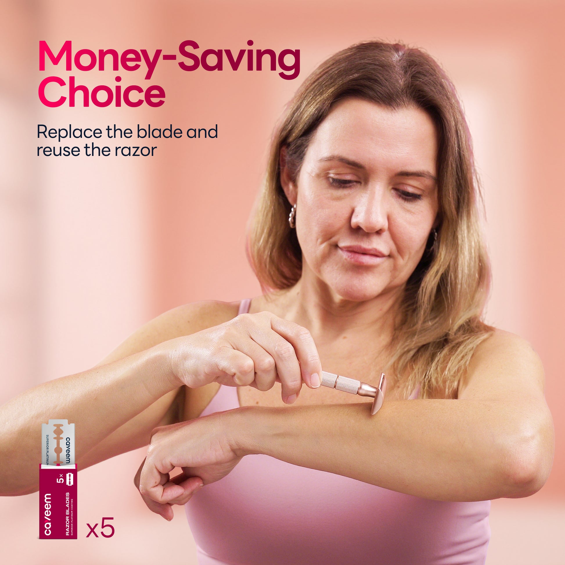 Reusable Metal Razor With 5 Stainless Steel Safety Razor Blades – Rose Gold